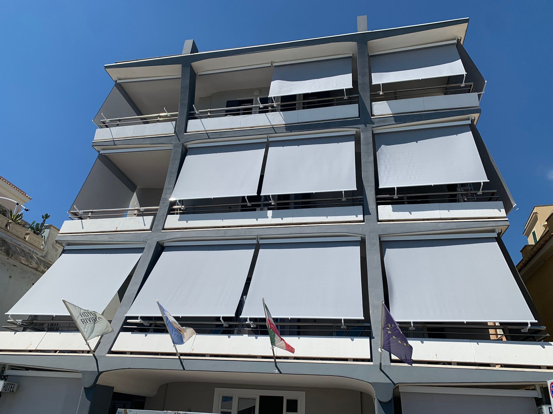 Le tende a guide laterali sono un tipo di tenda da sole che si caratterizza per la sua capacità di coprire e proteggere gli spazi esterni, come i portici, dalle intemperie e dal vento.